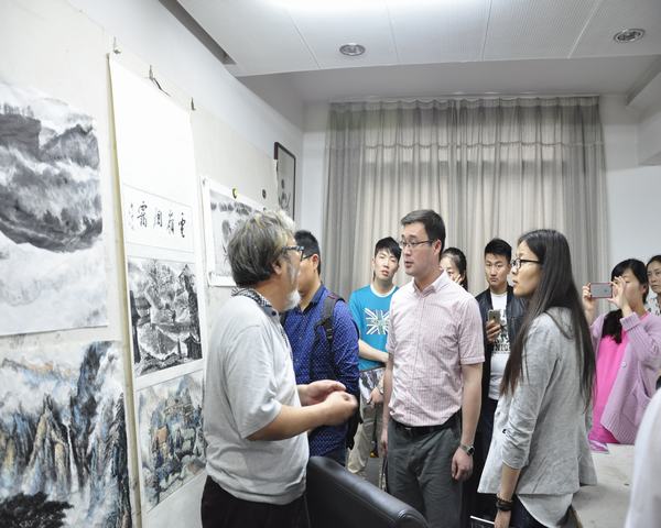 为了更好的进行文化交流,下午我校团委组织各位来宾参观了扬州著名山水画家张建老师工作室。此次参观得到了工会领导的热情接待。工作室中陈列了很多张老师及其学生的作品,有意境深远的中国水墨画、也有行云流水的书法作品。参观过程中,张建老师就中国画的表现形式进行解读,言简意赅地阐述了中国画重要的创作理论和表现手法,大家时而立足观看,时而拿起相机拍摄下心中认为最美的作品,表达着对作者们精心画作的敬仰之情。接着张建老师邀请了扬州民间工艺非遗物质文化传人、扬州刺绣大师卫芳大师和她的学生李娟老师讲解并表演了刺绣工艺在中国山水画和任务画表现上平针绣的艺术创作形式,现场观摩的青年们个个都赞叹不已。同时为了更好的展现扬州传统文化特邀请全国仅有的扬州非遗项目通草花工艺大师周春涛,现场表演了通草花制作工艺,通过展示让我们更深入的了解了通草花的传承和发展。最后,在看到大家心致盎然,意犹未尽时又安排他们参观了艺友画廊,在那里大家欣赏到了从清代末到现当代的许多的画作和书法作品。