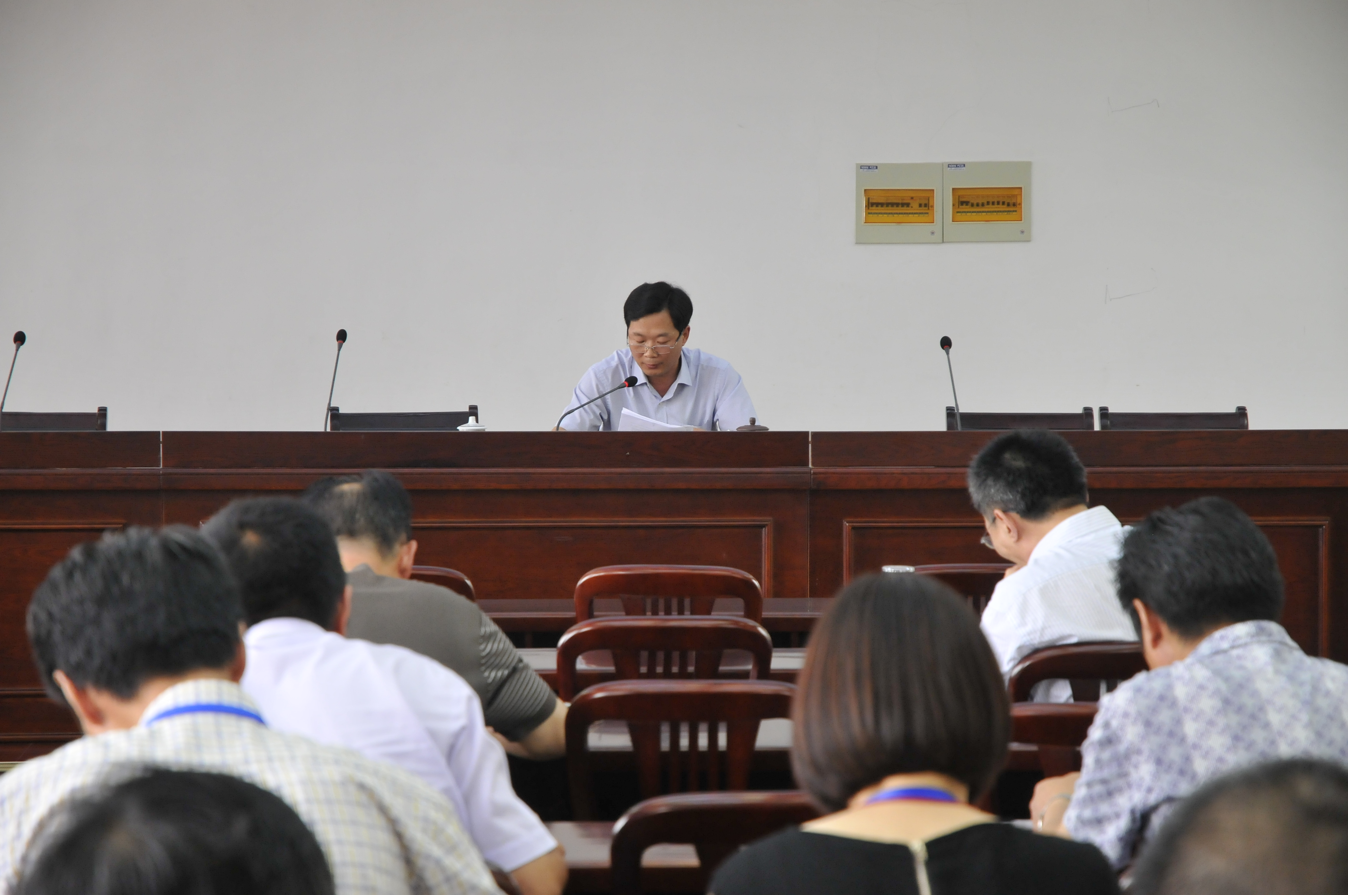 为贯彻落实全面从严治党要求,巩固和深化党的群众路线教育实践活动成果,持续深入推进党的思想政治建设和作风建设,按照省市委、市教育局部署,学校 “三严三实”专题教育活动全面启动。根据学校“三严三实”教育实践活动方案要求,7月4日下午,校党委委员、纪委书记赵杰为行政第一和第二支部全体党员开设了题为“认真开展‘三严三实和忠诚干净担当’教育实践活动,做合格的好党员干部”的专题党课。