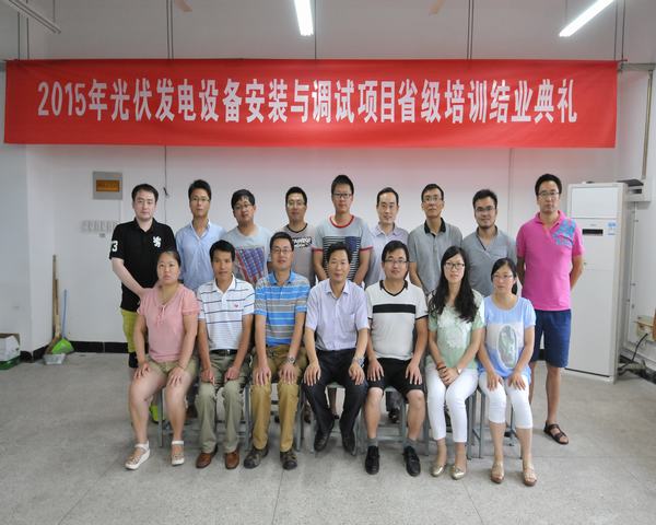 根据《省教育厅关于做好2015年中等职业学校省级教师培训工作的通知》(苏教师【2015】8号)要求,7月中旬我校承办的2015年江苏省中等职业学校光伏发电设备安装与调试专业教师技能竞赛培训工作在各级领导的关心和大力支持下圆满结束,此次培训共有来自全省各职业学校的15名光伏专业教师参加。