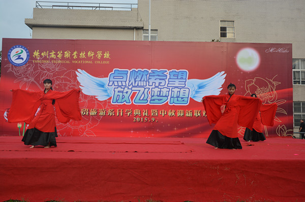 崭新的容颜,迎来全新的开始。9月23日下午,经贸旅游系隆重举行2015-2016学年开学典礼暨迎新庆中秋联欢活动。