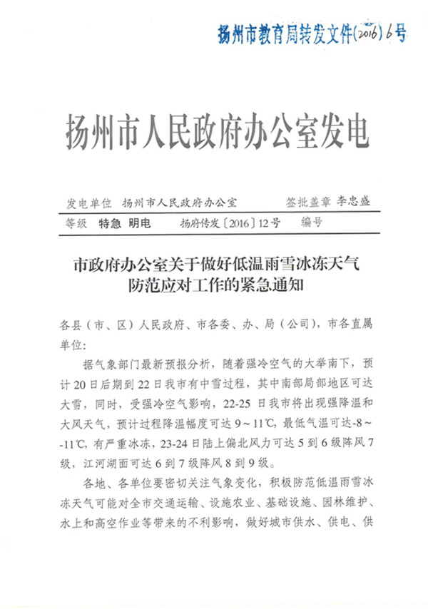 关于做好低温雨雪冰冻天气防范应对工作的紧急通知