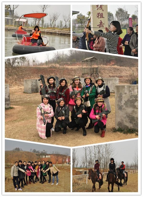 3月5日清晨,在副校长强玉龙及工会的带领下,学校女教职工前往扬州红山体育公园参加丰富多彩的户外活动。飞碟打靶、射箭、狙击枪、仿古炮、冲锋舟、脚踏船、碰碰船、马术、真人CS、垂钓、环湖自行车、滑草等活动项目异彩纷呈,美丽的公园到处充满了欢声与笑语,这是挥洒智慧的女同胞们欢聚一刻的日子,大家欢欣、鼓舞、幸福。