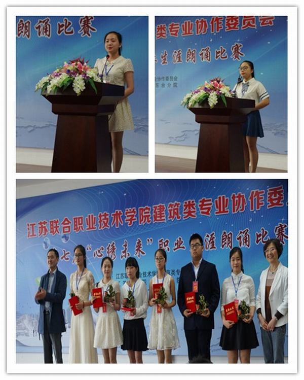 为进一步加深建筑类专业学生对未来职业的认知,帮助他们,树立职业理想,提高学生的思维和表达能力,5月13日上午,江苏联合职业技术学院建筑类第七届“心绣未来”朗诵比赛在东台中等专业学校落下帷幕,建筑与环境工程系13208班张紫涵、14205班马亚雯分获二、三等奖。