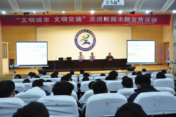 5月25日下午,学校与曲江街道新民村委会联合举办的 “文明城市﹒文明交通” ——走进校园主题宣传活动在学校报告厅举行,各系教师和学生代表300多人参加了此次活动。