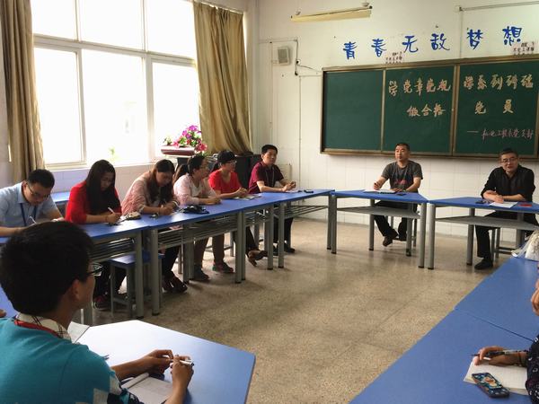 李翔宇宣布机电工程系党支部将在全体党员中开展“学习党章党规,学习习近平总书记系列重要讲话,做合格共产党员”专题教育活动,并做动员讲话,要求每位党员要自觉加强思想政治建设,积极投身“两学一做”教育活动中,学党章党规,学系列讲话,真正做一个“忠诚、干净、担当”的合格党员。随后该系党支部副书记、主任李春解读学校党委“两学一做”实施方案,进一步强化了支部全体党员的党章意识,用习近平总书记系列重要讲话精神武装思想。