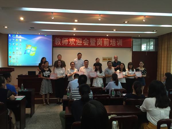 为帮助新教师尽快了解校情,熟悉教育教学相关理论知识和基本技巧,以便更好地熟悉和适应岗位工作,8月21日上午,学校在行政楼五楼会议室举行2016年新教师欢迎会暨岗前培训开班仪式,副校长徐荣宽出席仪式,组织人事处、教务处、学工处、督导室、各系负责人以及20名新进教师和相应的学科指导教师参加仪式。仪式由组织人事处处长徐艳主持。