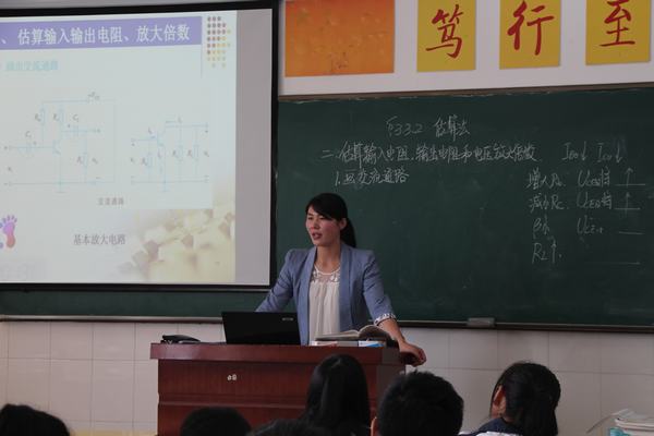 9月23号下午第一节课,高邮中等专业学校的左金开老师送课上门,在我校2014级对口单招电子电工班开设了一节示范课《分压式放大器静态参数的计算》。课后,全体听课的人员集中研讨,视导组组长李中民主持研讨会。大家一致认为左老师提供了对口单招复习课的范式,即从考点梳理、典例导入、由题悟法、以题试法和巩固练习等环节来组织复习,很有意义。