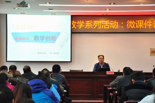 11月23日下午两点,学校行政楼五楼会议室座无虚席,掌声雷动。学校特邀扬州大学传媒学院院长冯锐教授,给与会教师带来《“互联网+”微课设计与教学创新》精彩讲座。