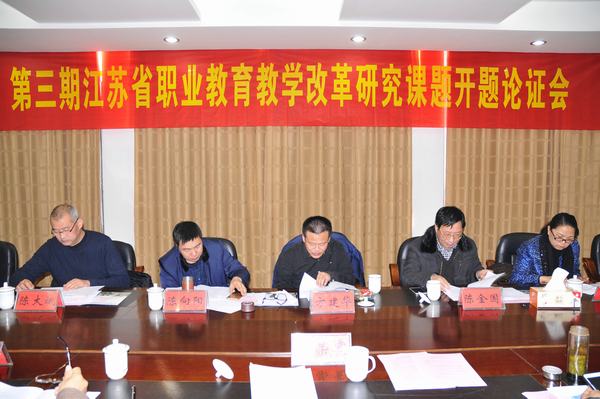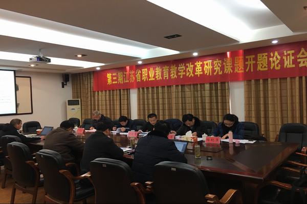 1月11日上午,学校在行政楼二楼会议室举行三项第三期江苏省职业教育教学改革研究课题开题论证会。参加会议的专家有江苏省教科院职教研究所方健华所长、江苏省教育科学研究院职业教育与终身教育研究所陈向阳博士、扬州市教育局职业教育教研室陈金国主任、扬州商务高等职业技术学校梅纪萍副书记、bat365官网登录陈大斌校长,会议由徐荣宽副校长主持,课题组全体成员、督导室相关人员参加会议。