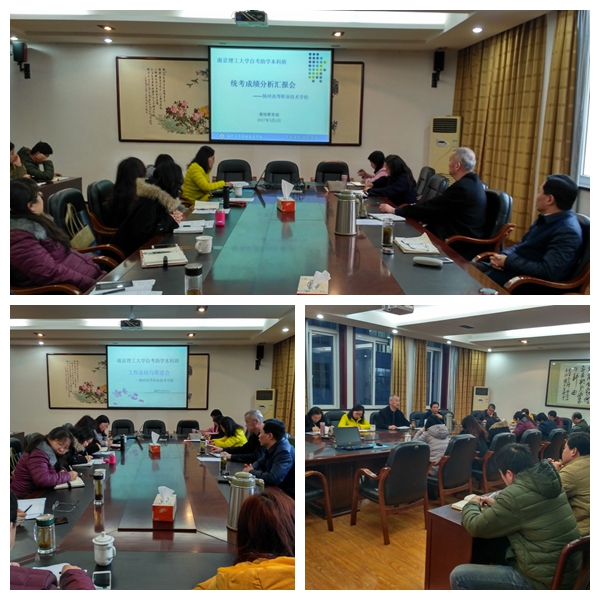各系部就南理工自考助学本科班前一阶段的教育教学、学生管理等方面进行了认真总结。随后,继续教育部主任万阿平就学校南理工班学生统考成绩,从多个层面进行了深入、细致的分析,多维度的数据让与会人员明晰看到各门课程在南理工17个教学点中取得的成绩与存在的差距。