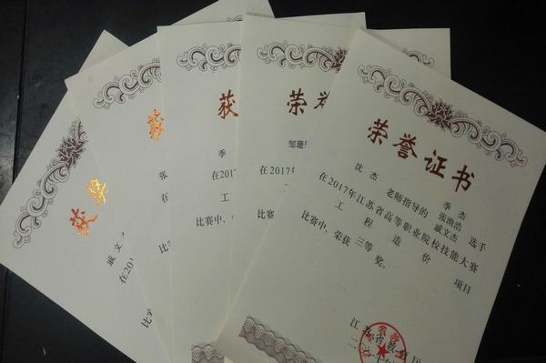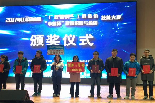 3月11日,春光明媚,从刚刚落下帷幕的2017年江苏省高等职业院校技能大赛“广联达”杯工程造价和“中望杯”建筑识图与绘图两项技能竞赛传来喜讯,建筑与环境工程系高职选手首次参赛,凭借良好的技能水平、过硬的心理素质和良好的精神风貌,摘得两枚宝贵的铜牌。