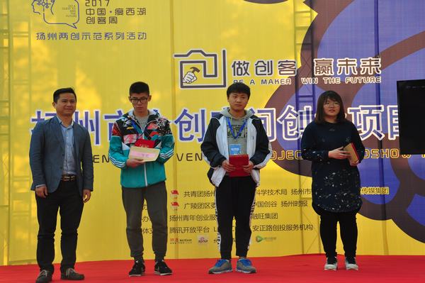 4月12日下午,扬州市众创空间创业项目路演赛在中国创谷正式拉开帷幕。本次大赛由共青团扬州市委、扬州市科技局、扬州市财政局、扬州报业传媒集团联合主办,广陵团区委、中国创谷以及扬州时报联合承办,盛日融旺集团、扬州青年创业服务中心等协办。我校“多功能太阳能应急手机充电器”和“自动显温报警奶瓶”两项创新项目受邀参赛。