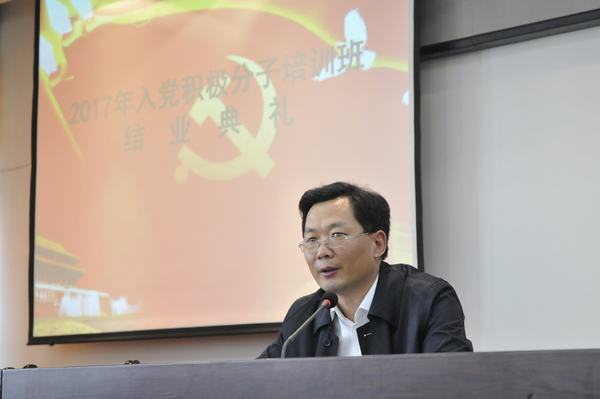5月3日下午,学校2017年入党积极分子培训班结业典礼在行政楼五楼会议室隆重举行。学校党委委员、纪委书记赵杰出席活动,各系分管学生管理工作负责人、党课授课教师以及培训班54名学员参加活动。结业典礼由组织人事处处长徐艳主持。