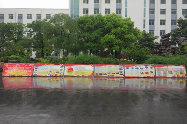 学校实训楼前红色的横幅已经挂好,广场上摆放了记录学校共青团一年以来各项工作和全体青年近一年来奋斗历程以及荣誉和成绩的戗牌。各个教室里,班级团支部的团员角已在醒目位置布置到位,展示的每一位团员的光荣与梦想,记载的是每一个团支部的精彩瞬间,今年的五四注定因你而精彩。(文/张渊慕 审稿/王玮)