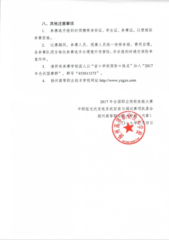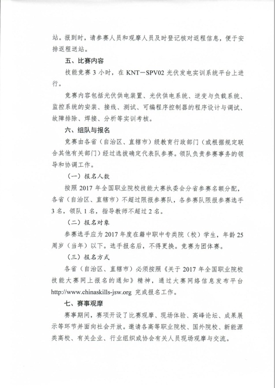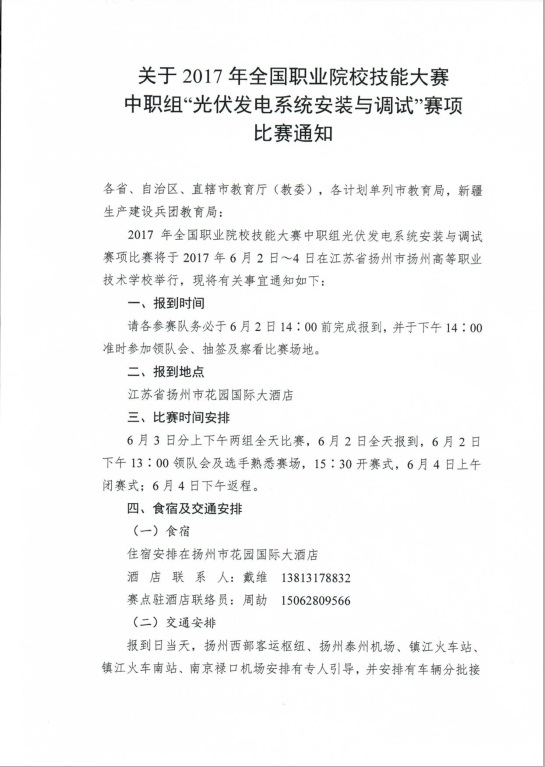 关于2017年全国职业院校技能大赛中职组”光伏发电系统安装与调试“赛项比赛通知