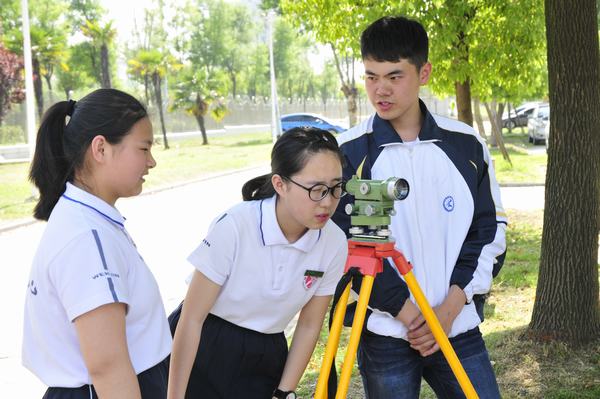 建筑与环境工程系“玩转建筑CAD建筑”项目,指导教师对CAD软件界面及功能进行了简单的介绍,讲解了直线、圆、移动、复制、修剪等命令后,让学生上机练习,绘制简单的房屋图形;在“建筑水准测量ABC”项目现场,学生们初次接触水准仪,表现出极大的兴趣,在指导教师介绍完微倾式水准仪的基本操作程序后,纷纷在现场模拟学习。