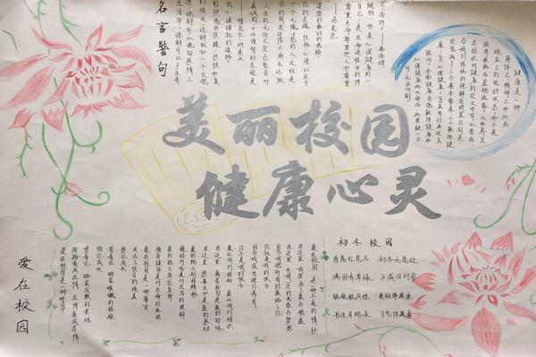 为促使学生进一步了解心理健康知识,增强学生的自我心理保健意识,使学生以积极乐观的心态面对学习和生活,基础教育部组织开展了以“美丽校园健康心灵”为主题的手抄报评比活动。