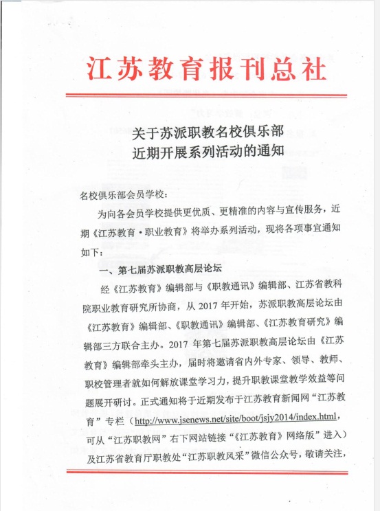 关于苏派职教名校俱乐部近期开展系列活动的通知