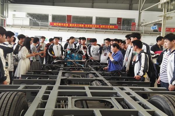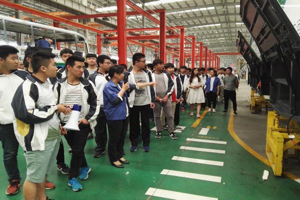 下午,师生们在企业技术人员的带领下参观了汽车的总装车间、底盘车间、涂装车间和焊装车间。每一辆客车的生产都有很多复杂的工序,学生通过观看客车从焊接车架金属车身、零部件组装、底盘的结构到整车调试出厂,对客车整个制造过程都有了感性的认识。汽车教研室的老师们耐心地为学生做讲解,引导他们理论联系实际。亚星客车高大的厂房、一望无际的生产线、全国领先的电泳技术、整车集成技术等让师生叹为观止,深刻认识到技术的创新是亚星客车处于行业领跑地位的重要支撑。