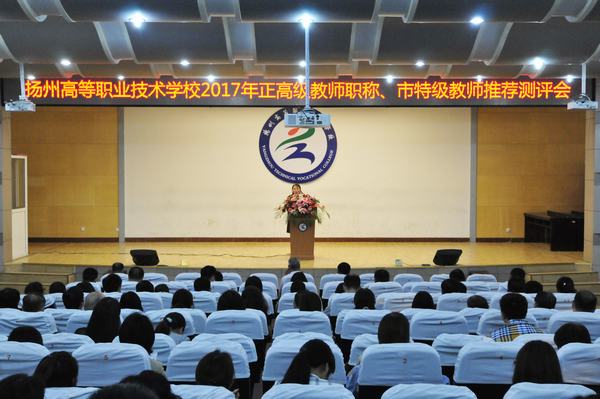 为切实做好2017年正高级教师专业技术资格和扬州市特级教师职务的申报推荐工作,根据江苏省教育厅、扬州市教育局的相关文件精神,学校于6月8日下午在报告厅召开申报人员推荐民意测评会。学校中层以上干部、副高及以上职称教师、各系团总支书记、行政秘书、教学秘书、教研室主任、年级辅导员参加了本次测评会。