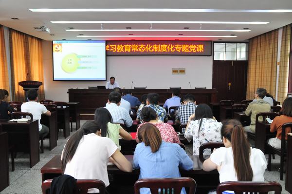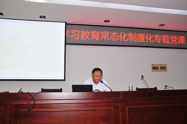 为深入学习贯彻习近平总书记关于“必须旗帜鲜明讲政治”重要论述,进一步增强学校党员政治意识、大局意识,坚定不移的推进全面从严治党,6月26日下午,学校党委委员、副校长徐荣宽为基础教育部党支部和信息工程系党支部全体党员上了一堂专题党课。