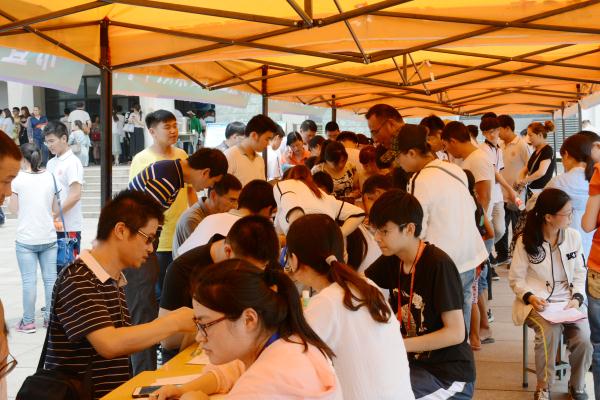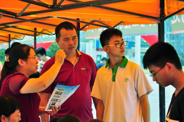中考成绩在28日晚8点正式发布,当晚,我校招生工作小组的老师们牺牲下班时间,主动守在办公室为打来电话的家长解疑答问,由于咨询人数太多,电话一度占线,以致29日早上七点多就有家长带着考生来我校咨询、报名。上午10点以后,招生报名工作渐入高潮,招生咨询台前人头攒动,摩肩接踵,负责接待的老师们不厌其烦、耐心细致地为考生家长解答各种疑问,努力让家长和考生对我校的专业设置、办学水平、办学优势等方面有全方位的了解。
