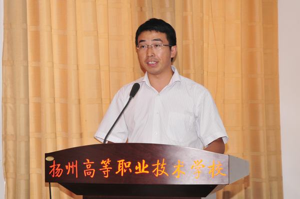 陈大斌代表学校致欢迎辞,欢迎来自全省的技能大赛的专家、老师学员来校参训。扬州正值出梅季节,天气炎热,学校将热忱为学员们做好后勤服务,让学员们生活愉快。