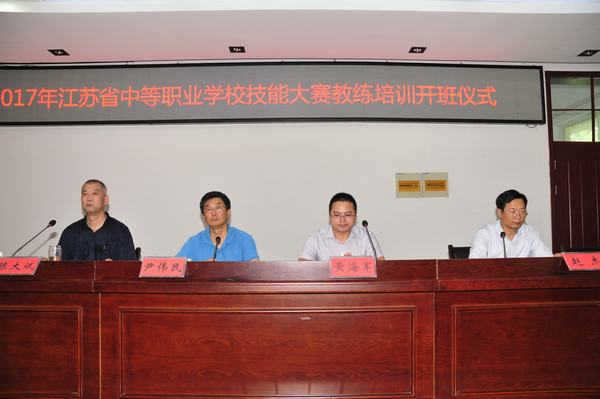 7月11日下午,学校举行2017年江苏省中等职业学校技能大赛教练培训开班仪式。江苏省教育厅副研究员、江苏省职教学会副会长尹伟民、江苏理工学院信息技术学院副教授黄海军、校长陈大斌出席仪式,仪式由纪委书记赵杰主持。