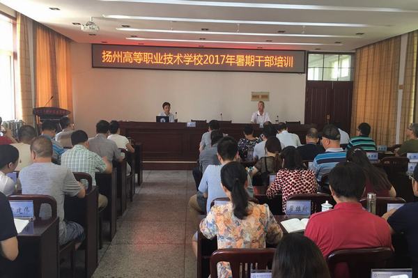 8月23日下午,学校2017年干部培训班开班典礼在行政楼五楼会议室举行。扬州市教育局财务审计处赵春喜处长出席开班仪式,学校校级领导班子成员、全体中层干部、学校财务处、后勤管理处,各系部行政秘书和教学秘书参加了开班典礼。仪式由校党委副书记、校长陈大斌主持。