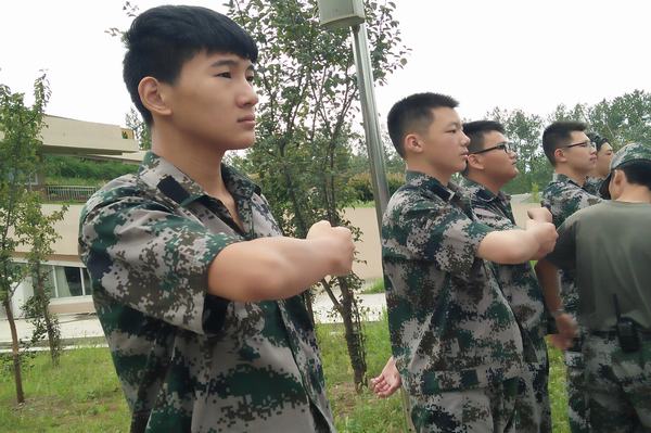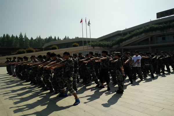 烈日炎炎,热浪滚滚,汗水滑落他们依旧稚嫩的脸庞;微风掠过,吹乱了他们被汗水浸湿的头发,但他们依然坚持。他们有着铁一般的纪律,带着“掉皮、掉肉不掉队;流血、流汗不流泪”的坚定信念,他们认真听着教官的指导,仔细看着教官的示范,在年轻的战场上接受着青春的洗礼。