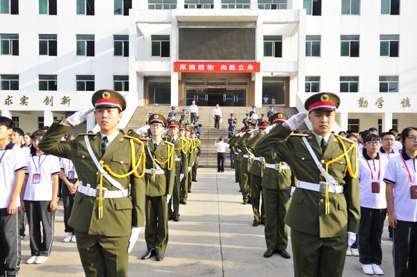 本次升旗仪式以“厚德载物,尚能立身”为主题。激昂的国歌声中,全校师生庄严肃立,向冉冉升起的五星红旗行注目礼。