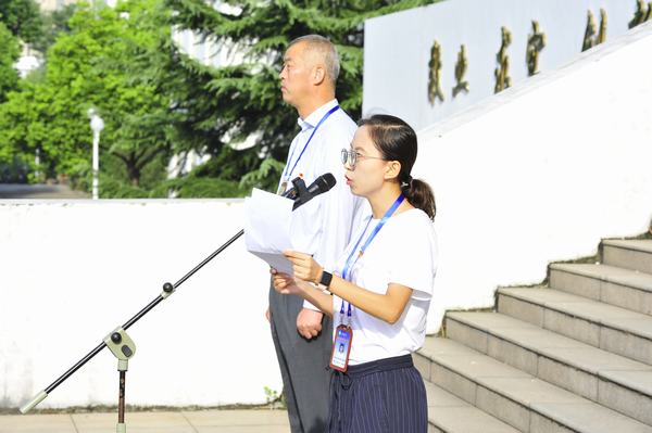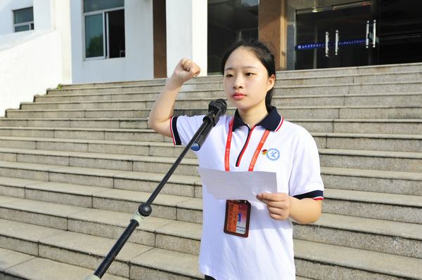 校学生会马亚雯同学带领全体学生宣誓,展现了新学期学生良好的精神面貌。