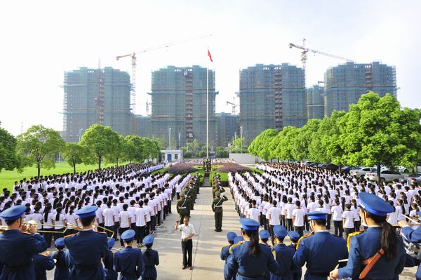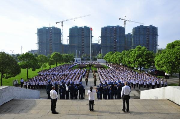 我们今天站在焕然一新的校园。也使得我们今天的升旗仪式具有非常特殊意义,成就了bat365官网登录建校以来第一次大团圆。