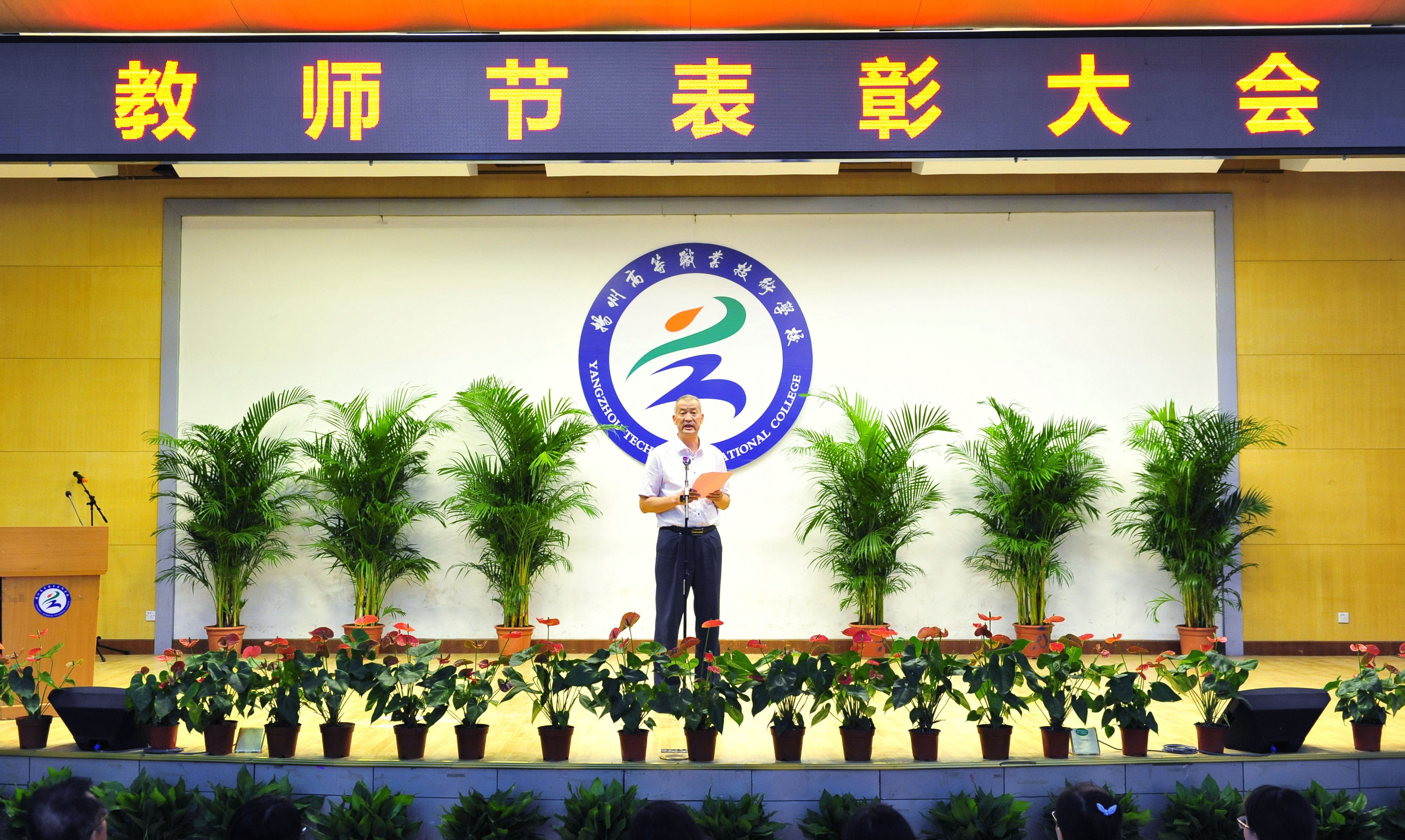 9月8日下午,在全国第33个教师节到来之际,学校在报告厅举行2017年教师节表彰大会,校长陈大斌、副校长徐荣宽、强玉龙出席大会,全体中层干部、教职工及学生代表参加了大会,会议由强玉龙副校长主持。