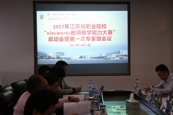 10月13日下午,2017年江苏省职业院校“elecworks教师教学能力大赛”启动会暨第一次专家组会议在苏州高等职业技术学校顺利召开,来自江苏省职业教育电工电子教科研中心组多位专家评委和裁判参加了此次会议。会议由省电工电子教科研中心组组长、学校副校长徐荣宽主持。