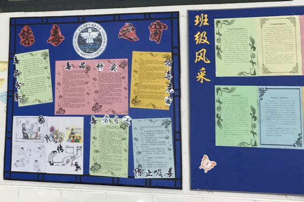 按照“自主创新、展现特色”的要求,每位学生积极参与,用勤劳的双手描绘了一幅幅属于自己班级的蓝图,为班级环境的美化出一份力,真正体验班级主人翁应有的那份责任心和荣誉感,充分展现了班集体的力量。从布置的内容来看,各班在黑板报、布告栏、图书角以及卫生角等这些必要版块的基础上,增加了一些特色版块,比如“禁毒宣传栏”、“班级风采”、“团员角”等,注重为学生创设培养良好行为习惯的环境,为学生营造和谐竞争的学习氛围,提供展示学生风采的平台。