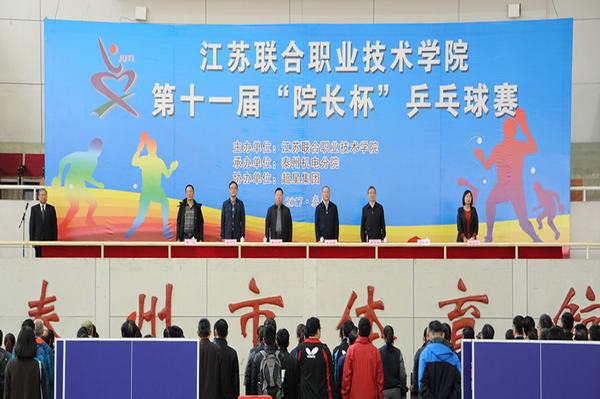 11月4日,由江苏联合技术职业学院主办、泰州机电分院承办的江苏省第十一届职业学校“院长杯”乒乓球比赛在泰州市体育馆举行,来自全省48个分院代表队200余名运动员参赛,我校校长陈大斌、副校长强玉龙、纪委书记赵杰代表学校参赛。