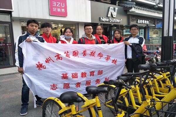 随着共享单车更多地融入生活、方便出行的同时,随之而来的就是乱停乱放问题。小区内,偏僻的小巷中,随处可见杂乱停放的共享单车。为了更好地引导大家文明使用共享单车,规范共享单车停放,11月26日,基础教育部志愿者服务队开展了“我为文明秩序出份力”活动。