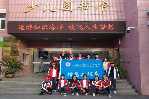 为了提升信息工程系学生志愿者的志愿服务品质,增加该系学生志愿服务的意识,在校团委的号召下,该系团总支书记石伟在12月5日“国际志愿者日”当天,带领该系学生志愿者到扬州市少儿图书馆开展了以“用心呵护书籍,以情感动读者”为主题的志愿活动。