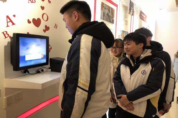 来到参观地点,扬州市中心血站袁青松科长热情地接待了参观人员,并详细介绍了本次参观的具体流程。在科普教育基地参观时,讲解员向大家介绍了无偿献血科普馆和血站展示馆2个区域34个版块,全面介绍了血液的生理知识和献血常识以及无偿献血中的先进人物和典型事迹。在展馆中,同学们体验了多种互动项目,如“血型遗传”、“人体血液循环”、“献血知识问答”、“爱心冲冲冲”等,这些活动以趣味生动、深入浅出的方式辅以多媒体高科技手段让人耳目一新。最后,大家在爱心留言墙上留下了足迹。