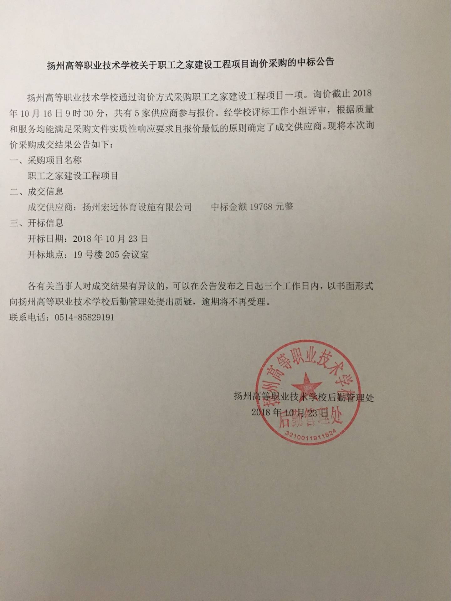 职工之家建设中标公告