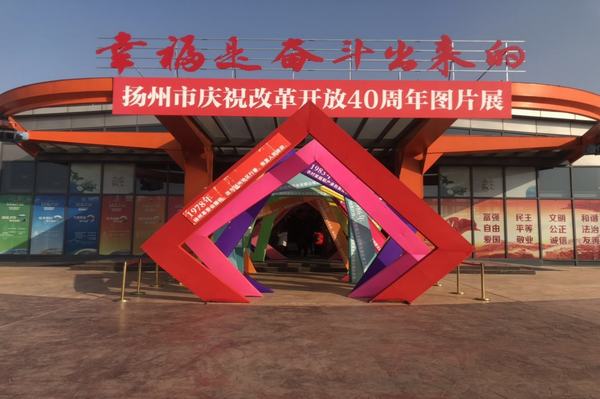 扬州市庆祝改革开放40周年图片展充分展示“建设人们心目中的扬州,满足世界人民对扬州的向往,争创城市发展的第四次辉煌”的理念,真实记录了扬州坚持改革开放,坚持以人民为中心的发展思想,凝心聚力、接续奋斗,一步一个脚印地把美丽宜居的公园城市、独具魅力的国际文化旅游名城、充满活力的新兴科创名城建设足迹,高度颂扬了扬州人民奋力谱写“强富美高”新扬州建设的豪迈情怀。以“幸福是奋斗出来的”为主题,通过“伟大征程”“沧桑巨变”“壮美画卷”“美好生活”四个篇章和“时光隧道”,以大量珍贵图片、图表、史料和实物,生动形象地展示了改革开放40年来人民生活从温饱到小康、逐步富裕起来的历史性变化,形象展现扬州全面深化改革、共创美好生活的生动实践和巨大成就。