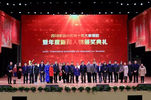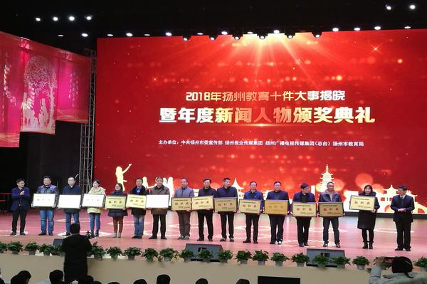 12月26日下午,由市委宣传部、扬州报业传媒集团、扬州广电传媒集团(总台)、市教育局联合举办的2018年扬州教育十件大事揭晓暨年度新闻人物颁奖典礼在振兴花园学校举行。扬州市委常委、市委宣传部部长姜龙,扬州市政府副市长余珽,扬州市政协副主席王克胜出席活动。我校姬寓老师荣获“2018年扬州教育十大新闻人物”称号,学校获组织奖。