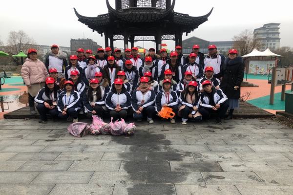 1月9日中午12点,本次校团委组织“保护环境,为新年的扬州换新衣”志愿服务活动,学校志愿服务总队在实训楼前列队集中。