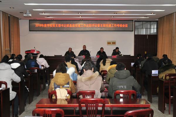 1月9日下午,学校党委召开2018年度学校党支部书记抓基层党建工作述职评议和支部党建工作考核会议。会议由校党委委员、副校长强玉龙同志主持。学校党委领导班子成员、各党支部书记、支委、党小组长以及各行政处室负责人参加会议。