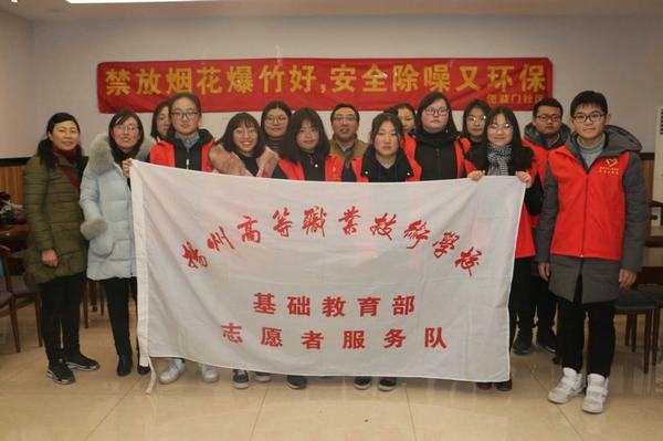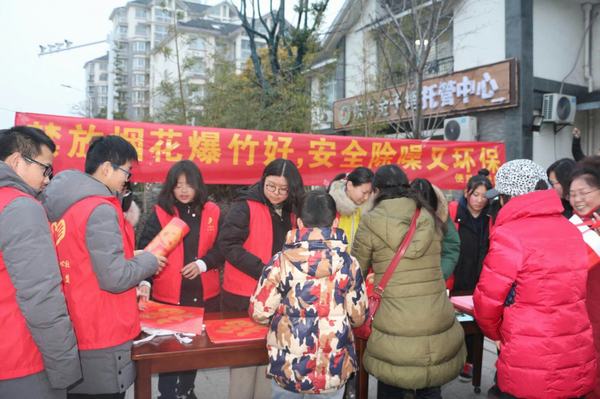 1月12日下午,基础教育部志愿者服务社团在指导教师王二兵的带领下来到梅岭街道便益门社区开展禁止燃放烟花爆竹宣传活动。