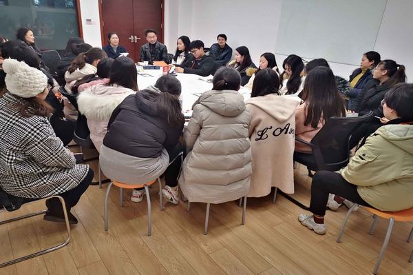 王剑表示,新岗位对于学生的新要求,加强业务知识学习,争取早日考取证券从业资格证书,要尽早适应员工的角色,既是同学又是同事,既要团结协作又要你追我赶争先进;王相林从学习态度、学习方法以及社会化学习等方面对我系学生进行了指导;张雪梅从马斯洛的需求理论谈起对我系实习学生提出了新希望,希望他们更上一层楼。令人欣慰的是每一位学生的学习笔记都非常认真,记得非常详细,短短十天时间记了两大本学习笔记,公司培训老师对学生的学习态度非常满意,称不低于同期来的本科学生。会后,两位班主任和学生们就生活、工作等进行了一次深入交流,学生们纷纷表示,新的一年,为梦前行、扬帆起航,新年会有新气象。