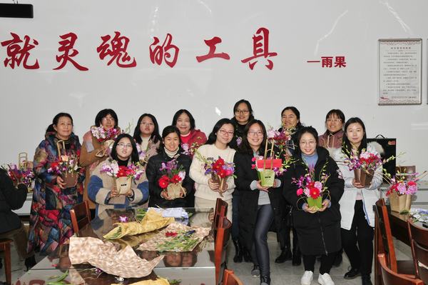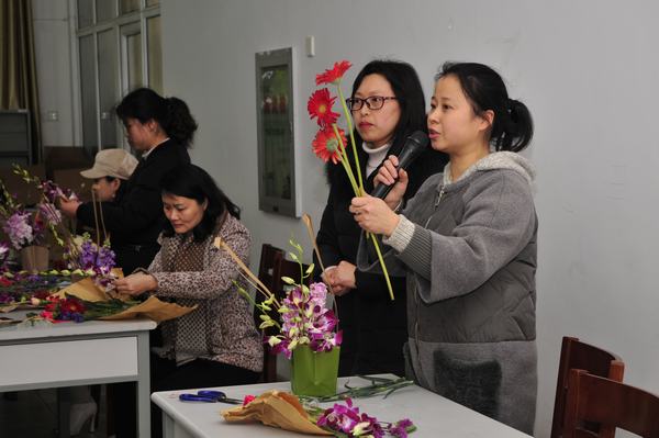 花艺是现代女性追求真善美的一种方式,忙碌工作之余,来一场与鲜花的约会,可以提升素养及优雅气质。本次培训活动不仅让大家学习了基本的插花技术,更愉悦了身心,陶冶了情操,增强了人生自信、职业自信和生活自信。参加活动的老师们表示,要把所学到的插花技术运用到今后的生活中,用更加饱满的精神状态投入到工作中。(文/万阿平 图/周璇 审稿/王玮)