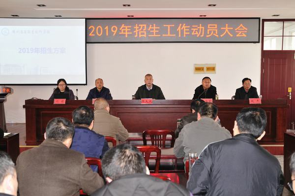会上,学工处处长沈莉宣读学校2019年招生方案,方案明确了指导思想、招生目标及计划数、组织机构、招生方法、考核办法等内容。强玉龙就招生方案制定的依据和鼓励性政策作说明,要求各处室、系部严格执行落实方案,明确分工任务,保障学校持续、健康、稳定发展。
