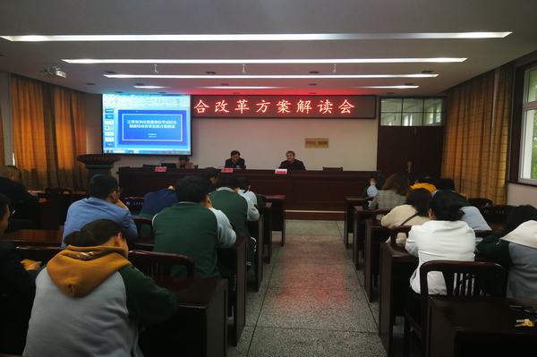 为全面深入了解新高考综合改革方向,帮助师生适应新高考背景下教育、教学的变革,激发广大家长了解、研究新高考新动向的热情,4月28日下午,学校专题召开2021年江苏省高考综合改革方案解读会议,纪委书记赵杰、教务处处长李翔宇、基础教育部副主任柏小凤及2018级综合高中班任课老师、全体学生和家长参加本次会议。